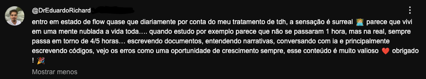"Entro em estado de flow quase diariamente..."